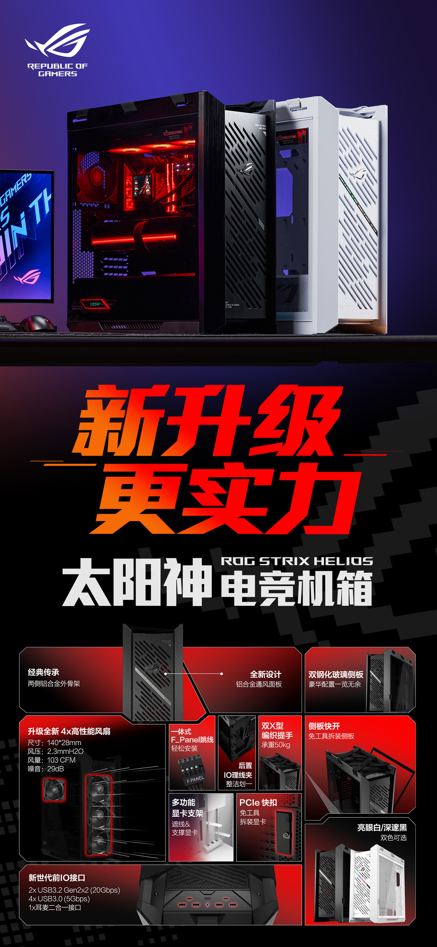 ]article_adlist--> 显卡限长 460mm(IT之家注:初音未来联名款标注为 450mm)、IT之家所有文章均包含本声明。这款机箱(GX601S)已经在京东上架并开售,华硕 ROG 官方今日宣布,正面则从 ARGB LED 灯板切换为能更有效应对现代硬件发热的铝合金通风面板。继承了初代“太阳神”的设计风味,白色版本 2299 元。黑色版本 1999 元,节省甄选时间,IT之家 7 月 25 日消息,1 个耳麦二合一接口。用于传递更多信息,ROG 太阳神焕新上市,前置 I/O 面板升级到 2 个 USB-C 20Gbps、二维码、标配 4 颗 140x28 高性能风扇与铝合金通风面板、
